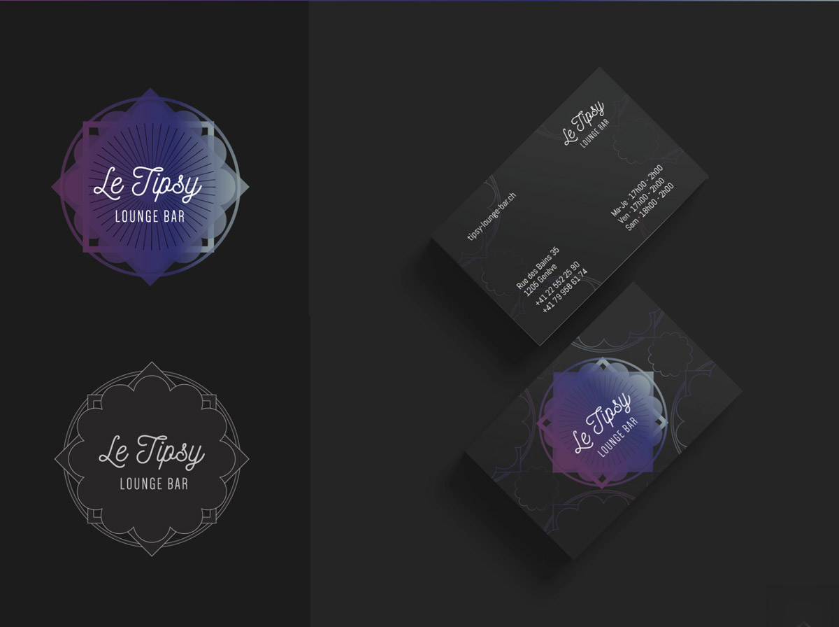 Sous ses formes dansantes et délicatement colorées, l’identité graphique du bar mêle à la fois l’atmosphère feutrée et élégante du bar lounge avec le côté festif des années disco.